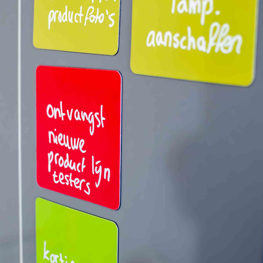 In einem geschäftlichen Umfeld ist ein gut organisierter Arbeitsablauf unerlässlich. Mit einem Büro-Whiteboard behalten Sie den Überblick, fördern die Zusammenarbeit und verbessern die Produktivität. Visualisieren Sie Arbeitsabläufe, strukturieren Sie Projekte oder behalten Sie den Überblick über Aufgaben. Mit einer Planungstafel für das Büro geht das noch besser.