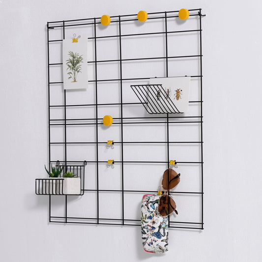 Insgesamt bietet die Metallgitter Wand eine praktische und ästhetische Lösung zur Organisation und Dekoration von Räumen in Wohnungen, Häusern oder Büros.